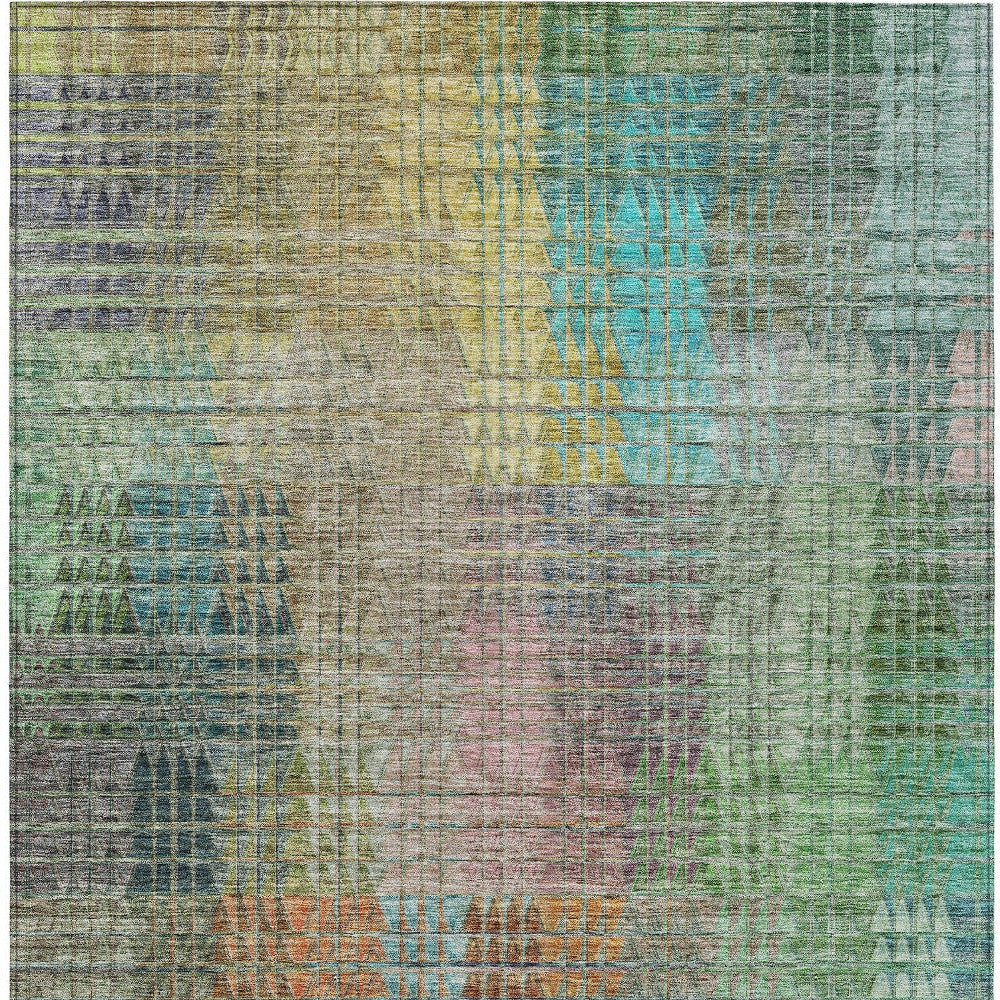 10' X 14' Green Gold And Teal Blue Abstract Washable Indoor Outdoor Area Rug