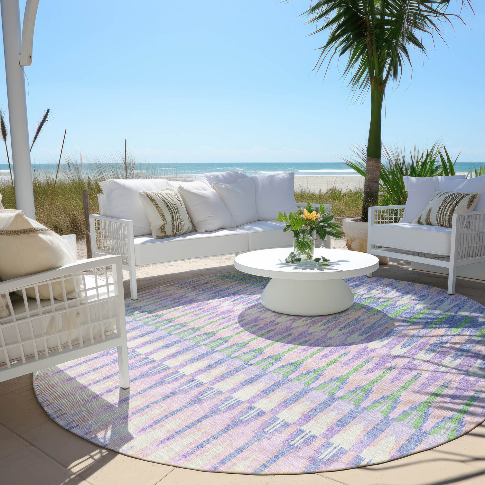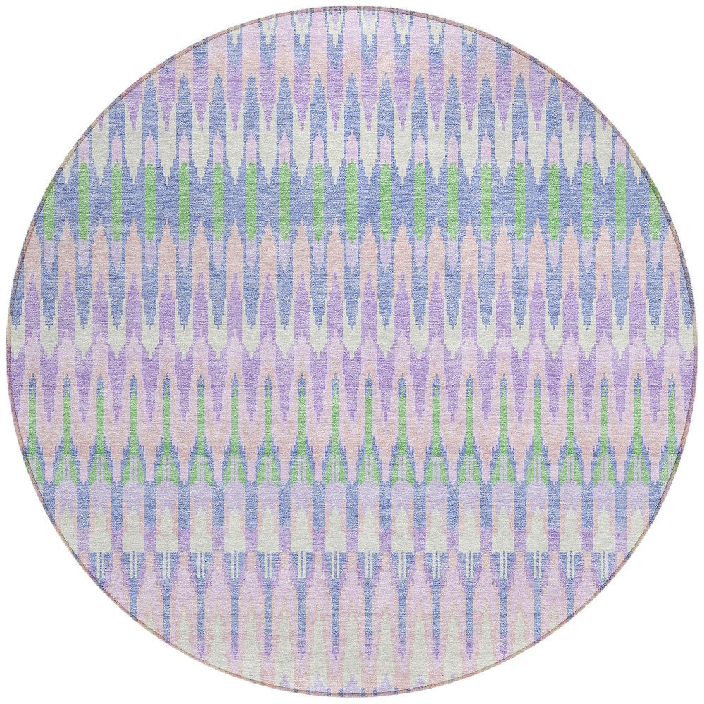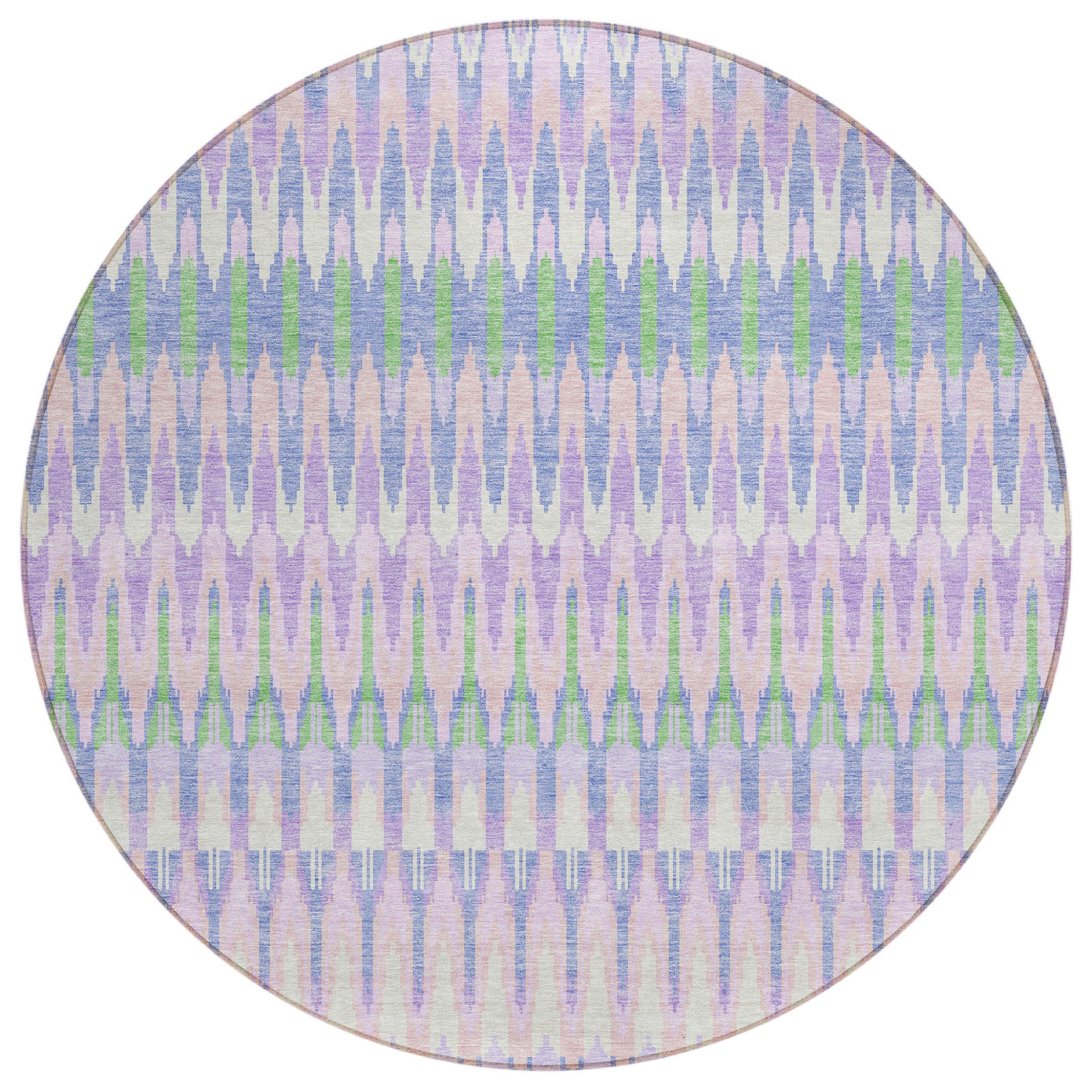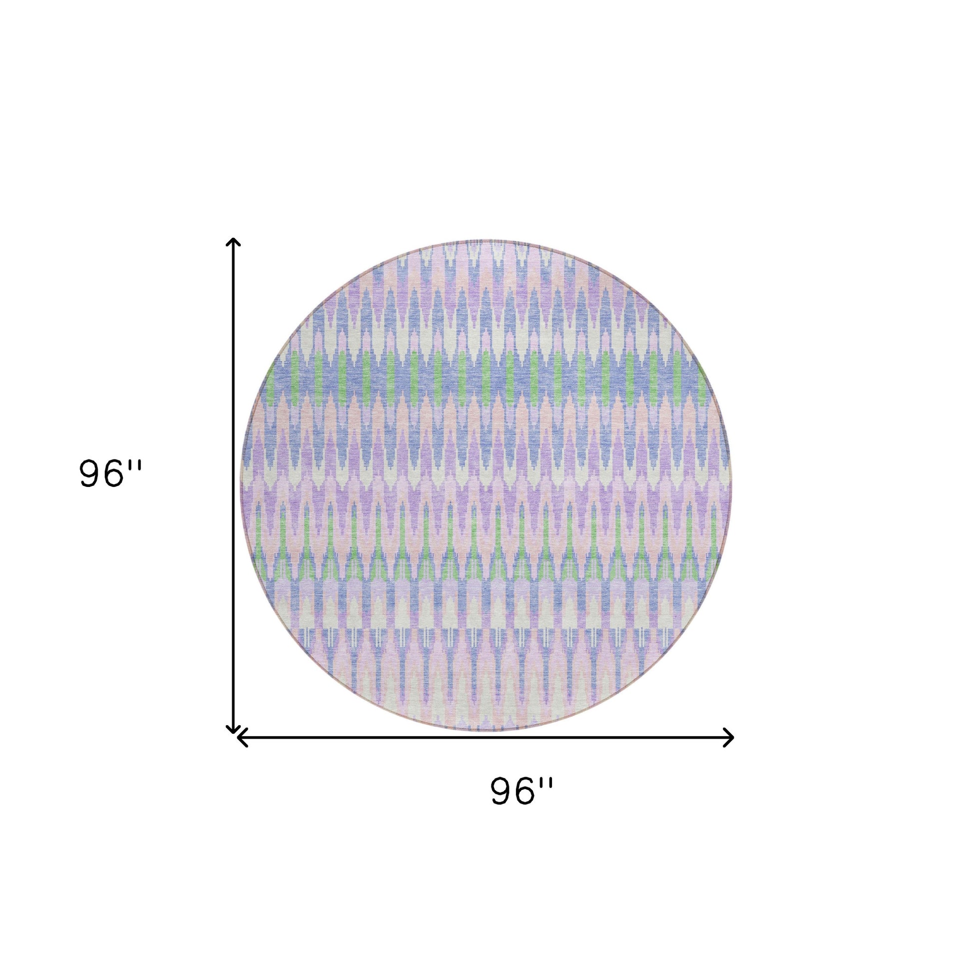 8' Lavender Pink And Lime Green Round Southwestern Washable Indoor Outdoor Area Rug