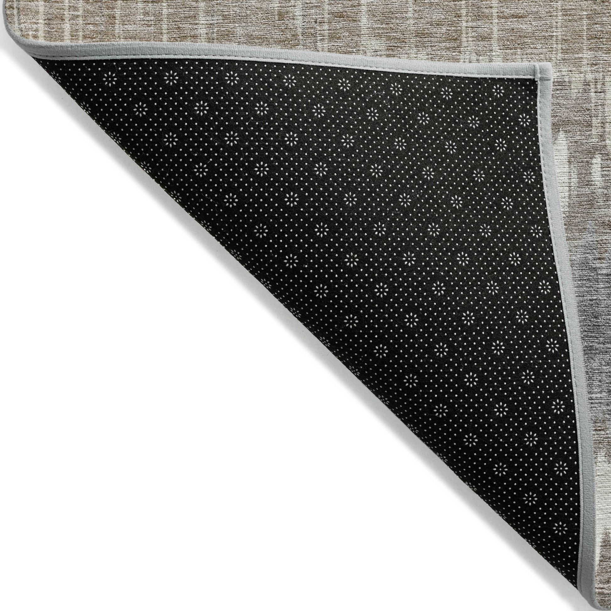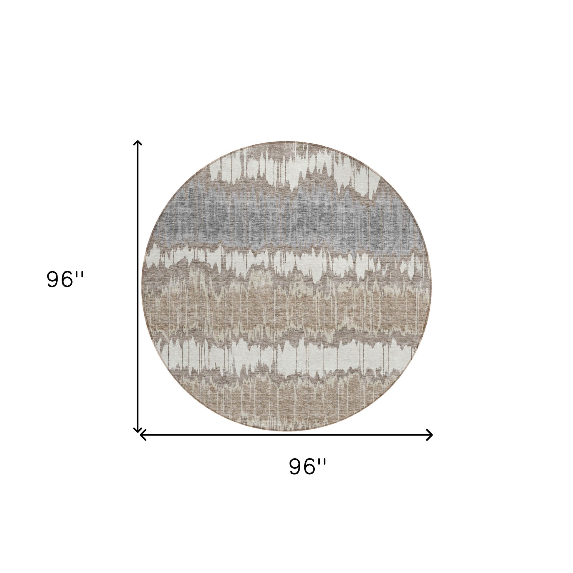 8' Taupe Brown And Ivory Round Striped Washable Indoor Outdoor Area Rug