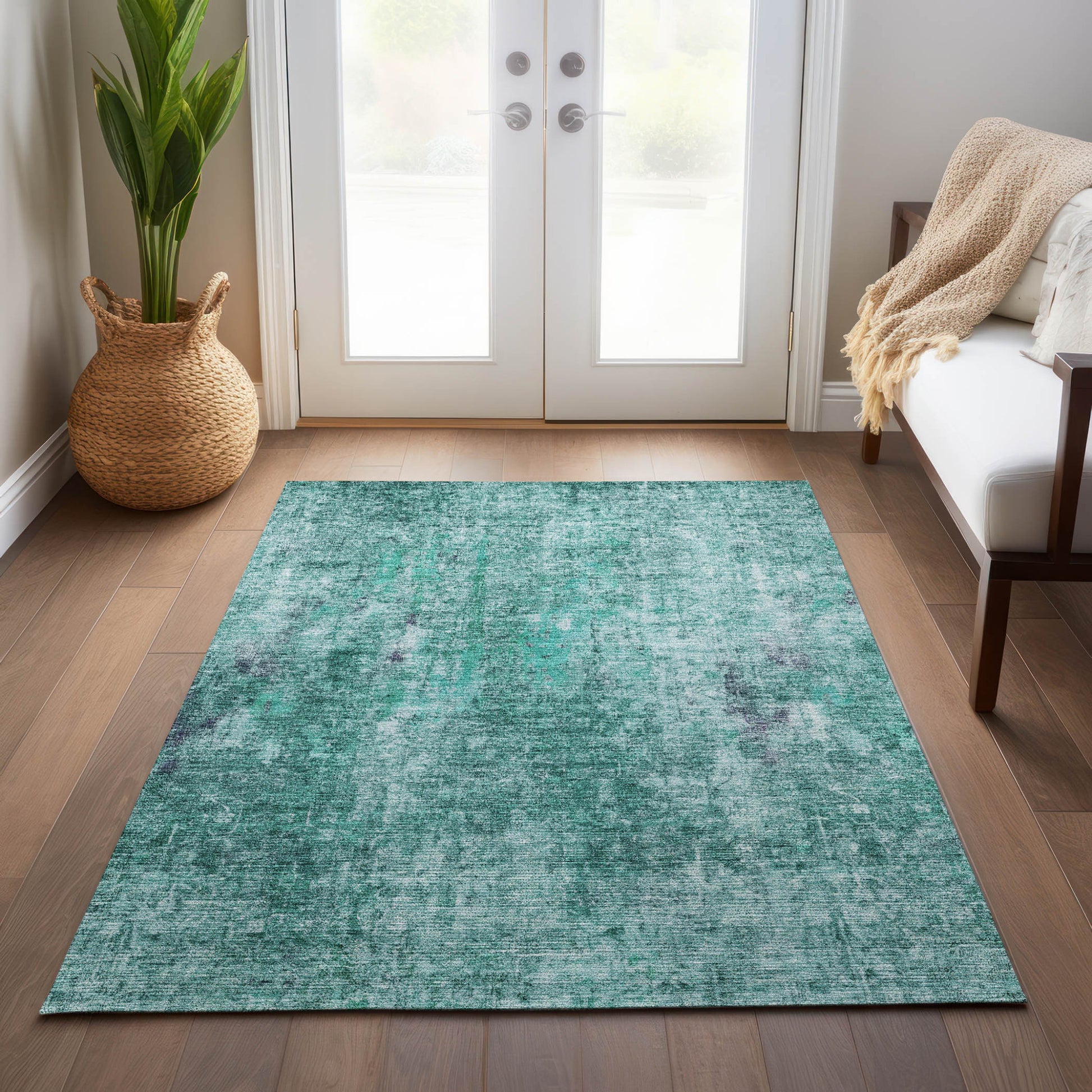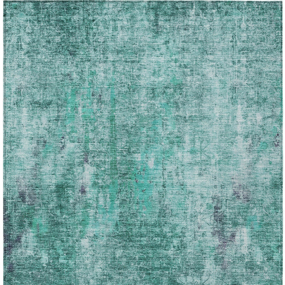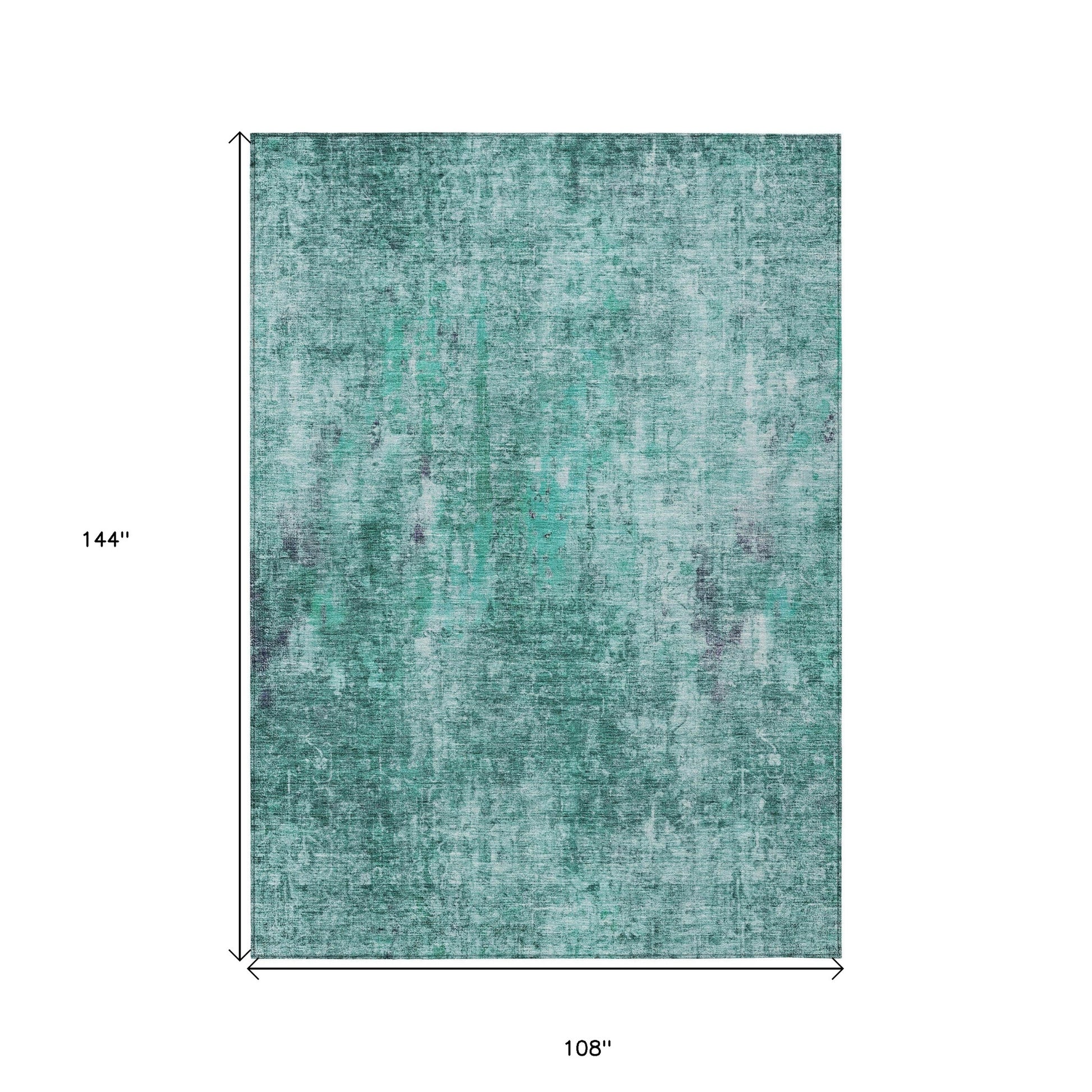 9' X 12' Teal Blue Green And Gray Abstract Washable Indoor Outdoor Area Rug
